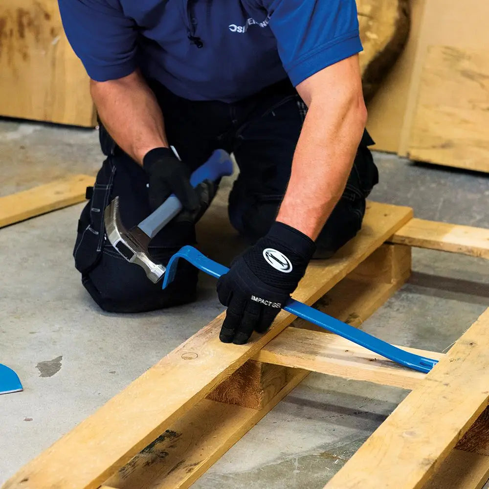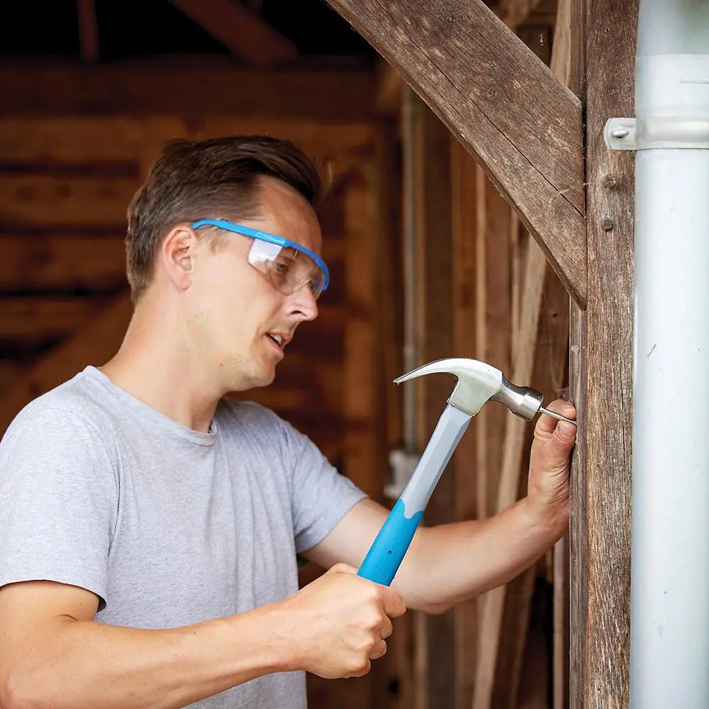 Forged steel head and shock-absorbing, high-strength fibreglass shaft with nylon surround. Polished and lacquered head and claw. High-grip handle is resistant to oil and chemicals. For fixing and removing nails.