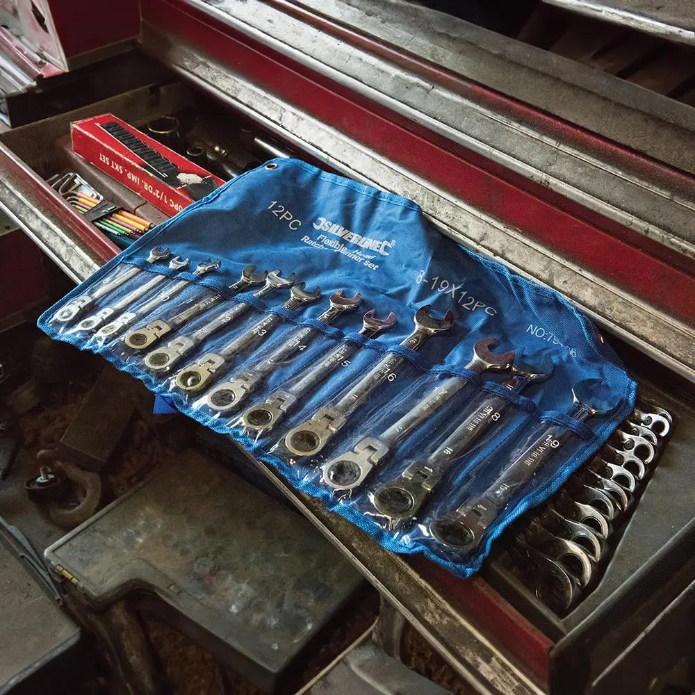 Silverline Flexible Head Ratchet Spanner Set 12pce 8 - 19mm 794336