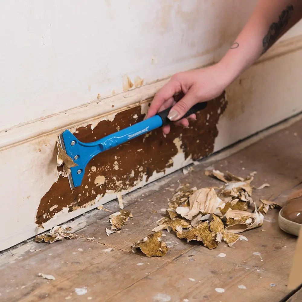 Heavy duty scraper with tubular steel shaft and rubber grip. Sharp 100mm blade mounted on angled head for effective scraping. Lightweight for comfortable use. Removes wallpaper, coverings, tiles, paint and adhesives. Compatible with Silverline Scraper Blades 10pk.