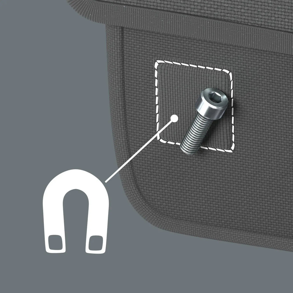 - The pouch with a sewn-in magnet on the front offers a place where screws and bits feel comfortable and will not get lost!